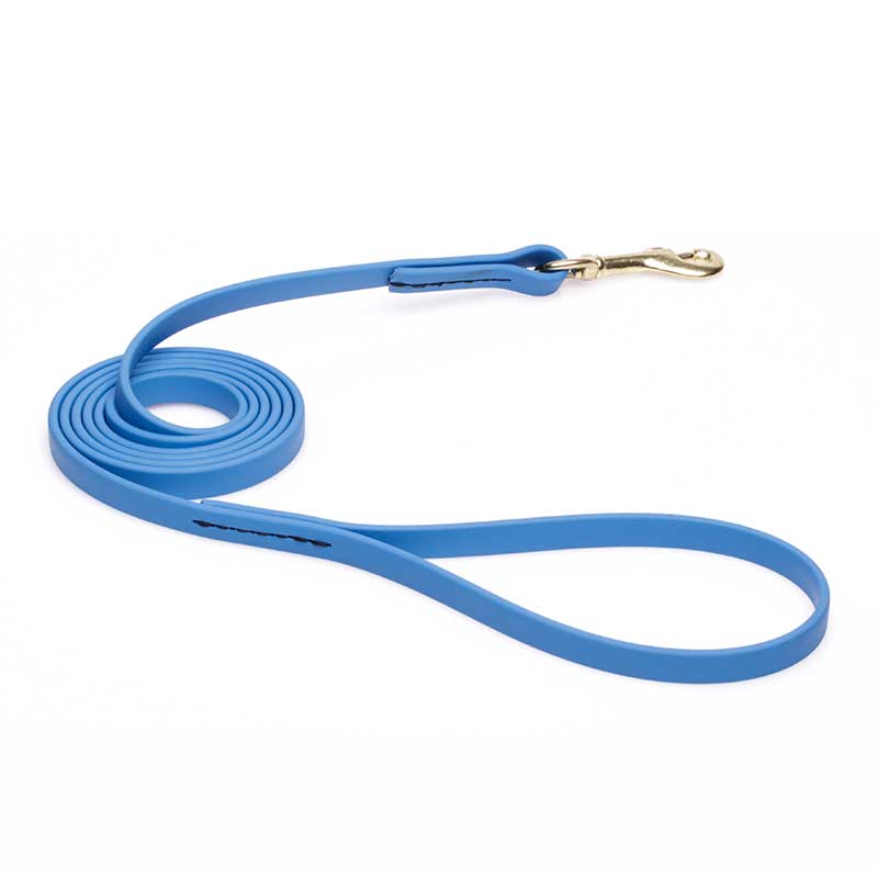 Our blue biothane leash is produced in 6 ft (180 cm) length and 1/2 inch (12 mm) width. Additionally, it has an super strong and safe brass snap hook.